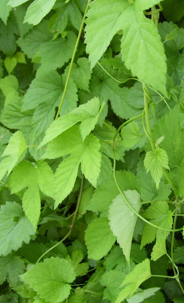 Description: This climbing perennial grows more than 20feet tall, with soft green leaves throughout the summer. With its vigorous growth and densely twining stems, it forms a thick cover for a fence, arbor or a low building, in just a few weeks. The female flower of the hop vine provides beer its characteristic bitterness, flavor, and aroma.
