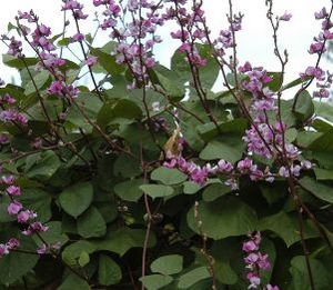 Description: Striking dark-violet colored stems, leaf veins and pods with beautiful lilac-colored blossoms that are held out above the foliage on long straight stems. Ornamental. Can grow to 10-15 feet if given adequate support. Very exotic looking climber. Flowers are fragrant. Attractive to birds and butterflies. Show stopping on fence or trellis.